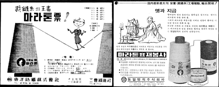 당시 한국 유일의 KS 표시 제품이자 해외시장에 수출되는 국내 최초의 재봉용 실을 표방하는 동일방직의 마라톤표 재봉사는 매출액의 20% 이상을 점유하기도 했다. 또한, 전국대리점 확대 정책으로 서울의 대영상사와 동일상사를 승계한 마라톤상사와 부산 삼염상사, 마산 정한상사, 대구 대일상사, 대전 공영상사, 인천 대진상회, 그리고 뜨개실 총판으로 서울의 쌍마기업 등 모두 8개 대리점을 확보해 내수시장의 기반을 확고히 구축했다.